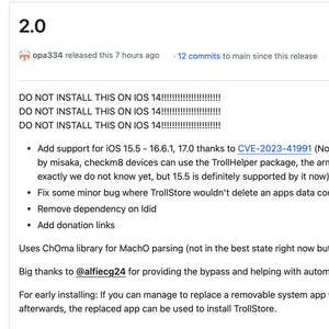 TrollStore 巨魔 2 正式发布,支持苹果 iOS 15-17 部分版本设备部署 IPA 软件