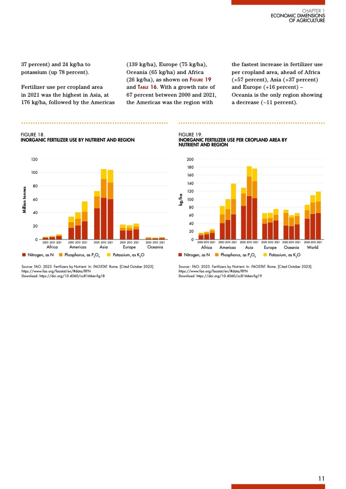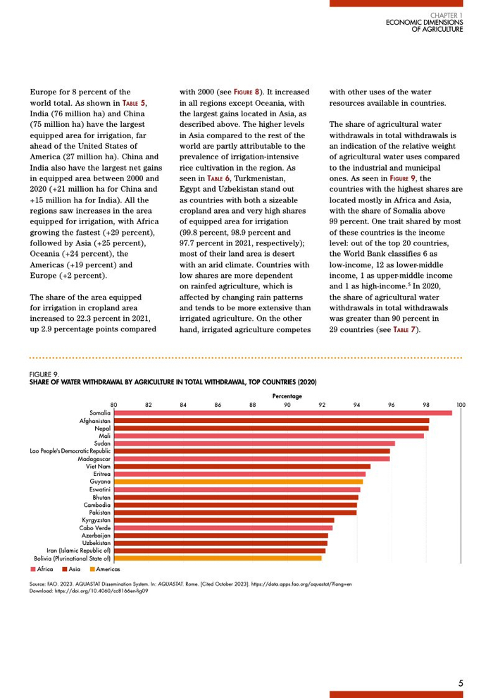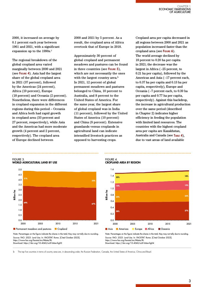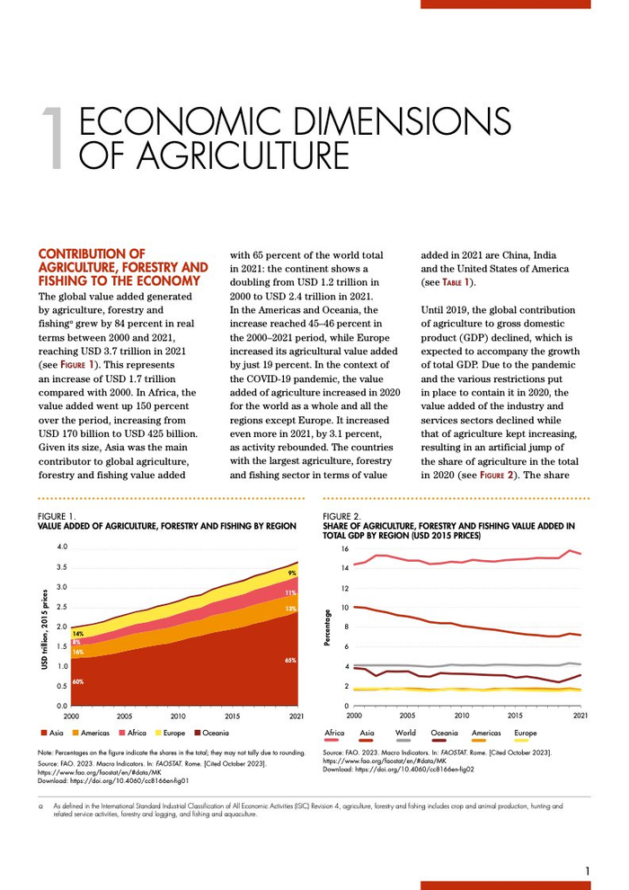 地域宽广的亚洲是全球农业、林业和渔业新增产值的主要贡献者,2021年占全球农业总产值的65%。