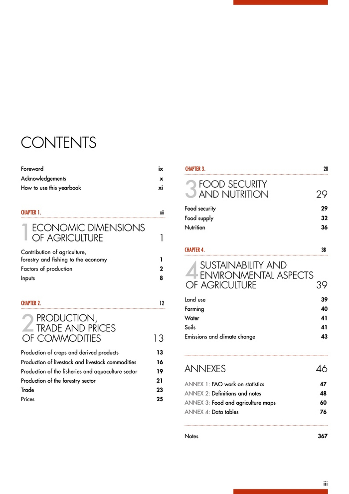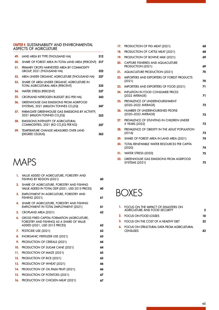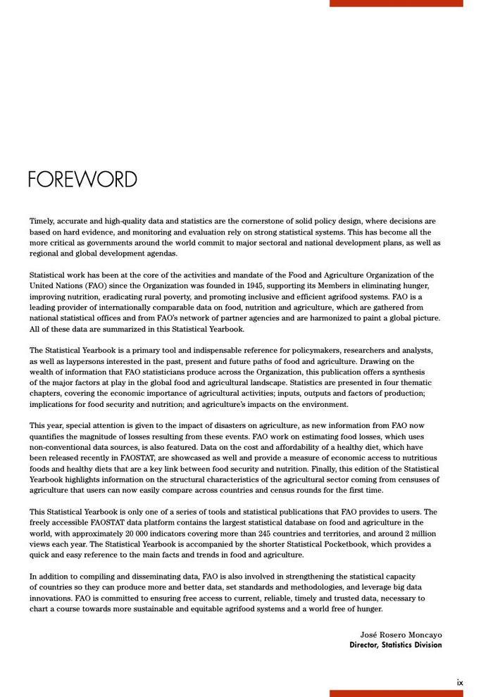 今年的《统计年鉴》强调了灾害对农业的影响,并量化了灾害事件造成的损失程度,同时还纳入了粮农组织统计数据库近期发布的数据,涉及健康膳食的成本和可负担性。