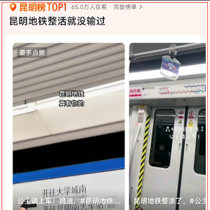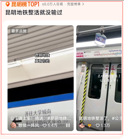 近日,昆明地铁开始播报“本次列车终点站大学城南站,公主请上车”语音后引发热议,网友纷纷留言问“王子咋个整”。热议声中,“昆明地铁整活就没输过”登上短视频平台热榜。