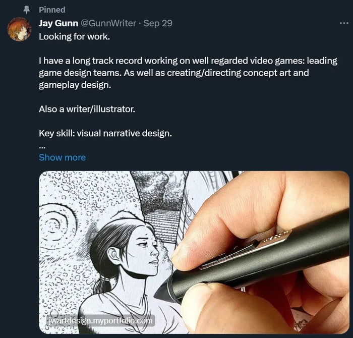 所以在2022年出版过《煤脸》这部销量惨淡的作品后,Jason由于“生活成本上的压力”,还是决定重回游戏业。只不过在历经了10年的业外履历后,许多公司会顾虑他在过去的工作经验过于冗杂,质疑他没法再胜任游戏相关工作,导致他的求职之路屡屡碰壁。