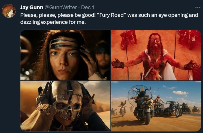 恶评之后,他的推特更新如常。对《疯狂的麦克斯4:狂暴之路》的怒吼式推荐:“太,太,太好了!一次如此震撼和令人眼花缭乱的体验。”