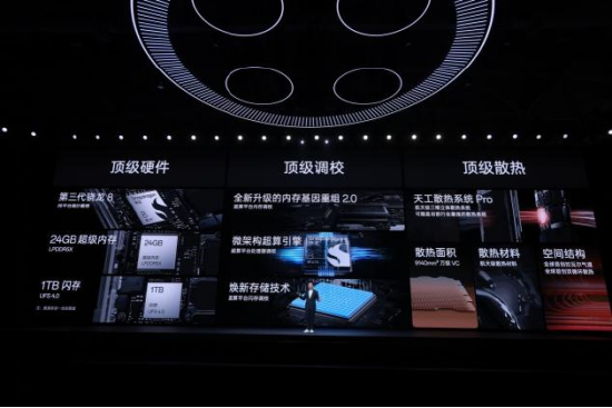 极致的散热是保障性能充分释放的基础,一加 12 搭载自研「航天级天工散热系统 Pro」,在前代天工散热系统基础上,大幅优化 VC 和机身内部散热结构设计,拥有全球首创航天级空间结构,使用行业最先进的航天级新一代超导热材料,搭载 9140mm² 万级单 VC,并在正面再增加一块新一代超导热石墨,整机散热总面积高达 38547mm²,从散热面积、散热材料、空间结构三维发力,为巅峰性能持续输出保驾护航。