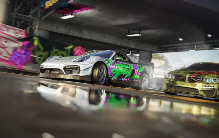 最后还是说说游戏的音画表现吧。游戏整体的风格气质比较接近最近几代极品飞车正作,走的青年时尚潮流路线,我个人不太懂时尚,只能说整体感觉还是挺对劲的。游戏当中有很多类似《极品飞车:不羁》涂鸦风格的视觉特效,这个风格在玩家当中还是挺受好评的,也符合一款主打爽快漂移的赛车游戏的气质。