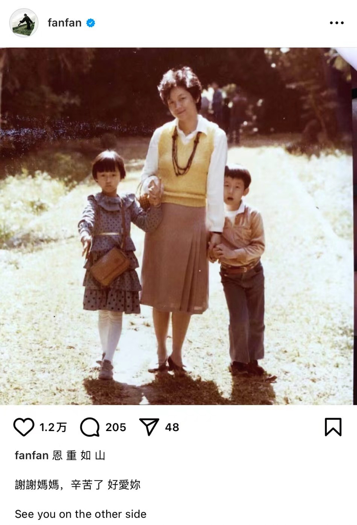 歌手范玮琪母亲因病去世,一年多来已痛失三位至亲