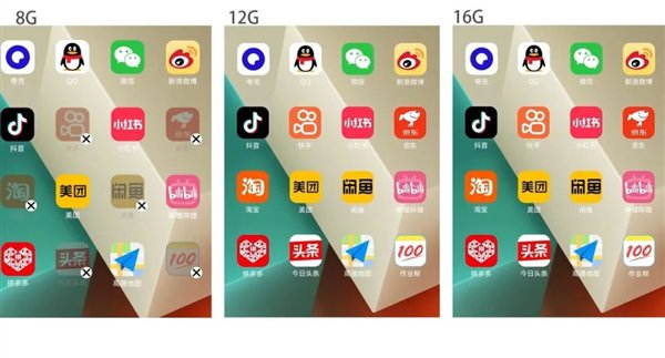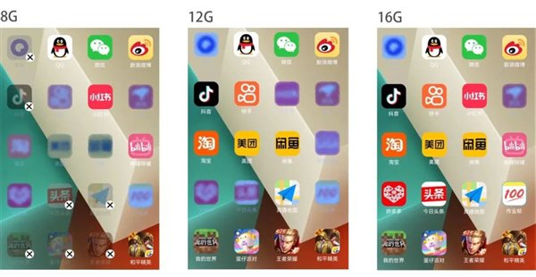 而 12 和 16GB 内存的机型,一个应用都没杀。
