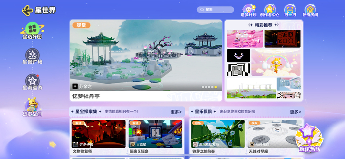 除了官方提供的“竞速闯关”、“生存闯关”、”大乱斗“、”武器大师“、“躲猫猫”、“谁是狼人”等玩法,在《元梦之星》星世界里还有更多玩家创作的地图,且有不少做得有模有样。