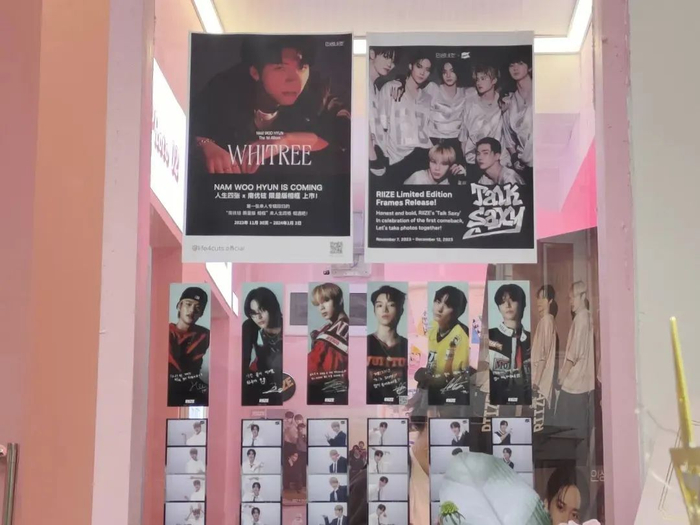 为了吸引客流,韩国的人生四格品牌会与韩流明星合作,将歌手们的照片做成边框。粉丝们就可以通过拍摄人生四格自拍照,达成和爱豆同框的愿望。而在国内,粉丝在爱豆生日、出道纪念日等特定的时间,会将自己原创设计的边框投稿至大头贴自拍机平台。在平台审核通过并上线后,全国各地的粉丝同好就可以在自拍机上选取相应的爱豆应援相框并进行拍摄。