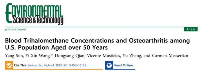 Sun Y, Wang YX, Qian D, Mustieles V, Zhang Y, Messerlian C. Blood Trihalomethane Concentrations and Osteoarthritis among U.S. Population Aged over 50 Years. Environ Sci Technol. 2023 Oct 31;57(43):16166-16175. doi: 10.1021/acs.est.3c01495. Epub 2023 Oct 18. PMID: 37852642.