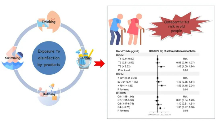 近日,上海交通大学公共卫生学院汪一心研究员联合国际团队,利用美国国家健康与营养调查(National Health and Nutrition Examination Survey,NHANES)数据分析了消毒副产物暴露对儿童青少年骨密度以及中老年骨关节炎患病的影响,发现饮用水三卤甲烷暴露不仅可能会导致儿童青少年骨密度减少,而且会增加中老年人骨关节炎发生风险。研究成果首次揭示了日常用水活动过程中暴露于消毒副产物可能会损害人体骨骼健康,对于骨骼相关疾病的预防具有重要的科学意义。研究结果相继在线发表在环境与健康领域高水平期刊Environmental Science & Technology(IF=11.4)。