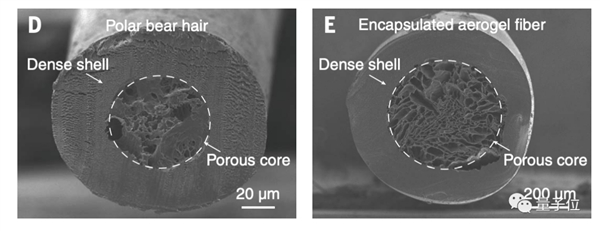 他们观察了北极熊毛发的电镜照片,发现它是一种两层结构,外层是致密的壳,内部则是疏松多孔的构造。