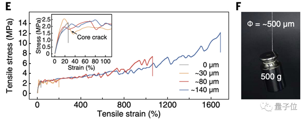 EAF的抗拉伸性能,外壳厚度为140微米的EAF材料可以承受16倍的伸长和高达12.7MPa的拉伸强度。