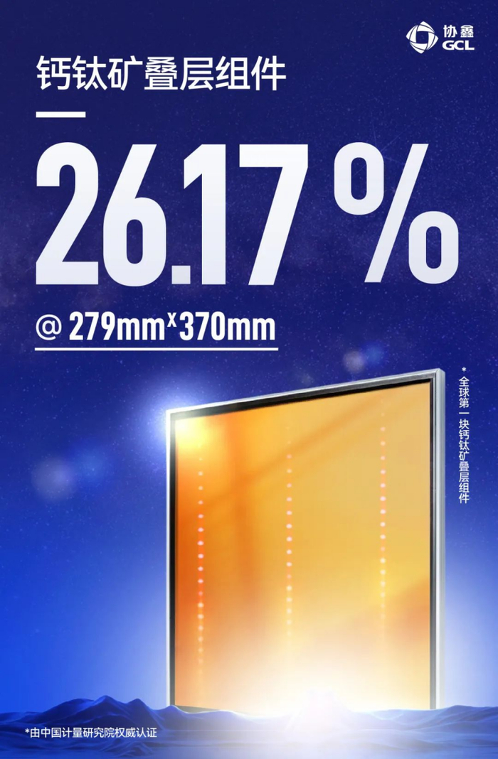 钙钛矿真“上天”了。12月14日,协鑫光电宣布369mm×555mm钙钛矿叠层组件光电转换效率达到26.34%。