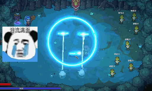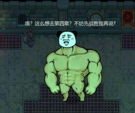 在目前《魔法工艺》的关卡最后,有一个自称游戏作者的表情包熊猫人挡在玩家面前,以超越版本的强度阻止玩家继续向前(因为下一关还没做完)。但是只要法术配置合理,无伤击杀它对于玩家来说也不是件难事。