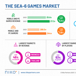 Niko Partners预计,SEA-6 PC和手机游戏市场将在2023年产生58亿美元的收入,到2027年将达到72亿美元。