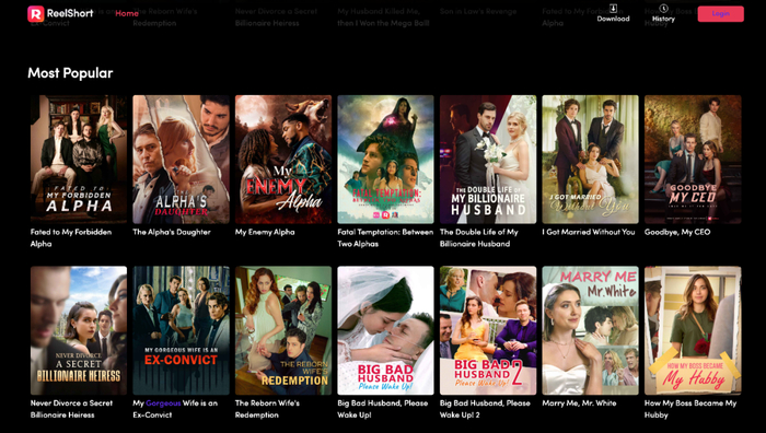 ReelShort上最火的短剧剧集/图源:ReelShort