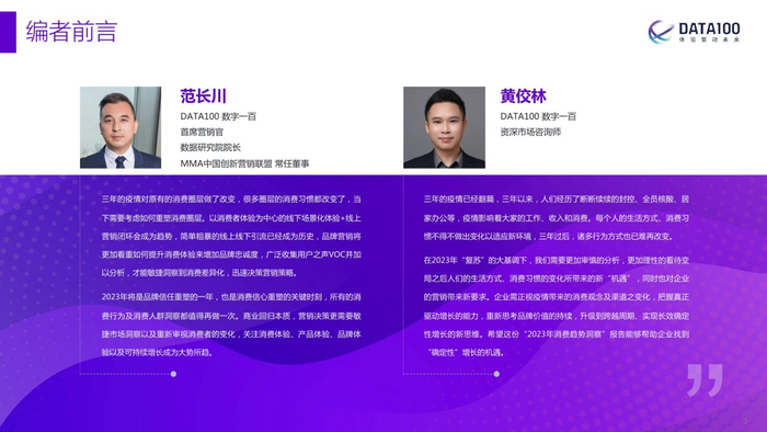 但是,线下大卖场、大超市的消费也将得以显著恢复。根据数字一百 DATA100 数据显示,64% 的受访者表示 2023 年将更多的进行线下消费。