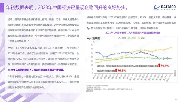 今年春节假期,中国国内旅游出游 3.08 亿人次,同比增长 23.1%;全国消费相关行业销售收入与上年春节假期相比增长 12.2%,中国经济正呈现企稳回升的良好势头。