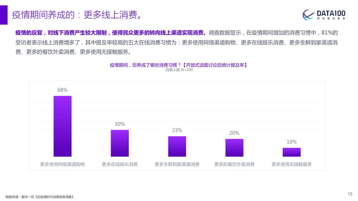 疫情导致居民收入和支出的双双下降,再加上疫情期间紧张的社会氛围,让消费者的消费习惯也发生了很大变化。数字一百 DATA100 通过多方位访问,总结了疫情期间消费者养成的以下五大消费习惯: