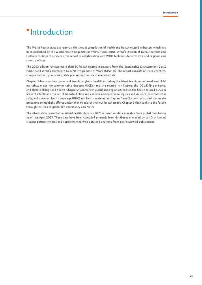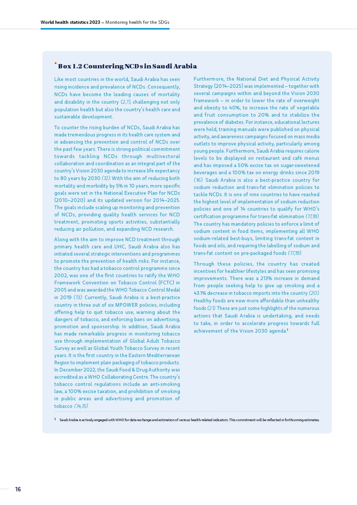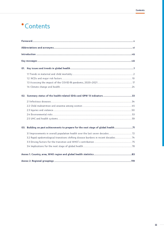 世界卫生组织发布了“2023年世界卫生统计报告”。全球人口健康状况有了显著改善,儿童死亡率减半,孕产妇死亡率下降1/3,包括艾滋病毒、结核病和疟疾在内的许多传染病发病率下降,非传染性疾病和伤害导致过早死亡的风险下降,全球出生时预期寿命从2000年的67岁上升到2019年的73岁。