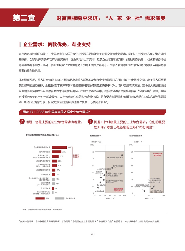 本次调研中,首次引入客户旅程概念,以更精细化地评估私行服务各环节的体验及重要性。调研结果显示高净值客群对客户体验愈发重视。这就要求私人财富管理机构能更好理解客户综合需求,并在全生命周期提供专业陪伴。