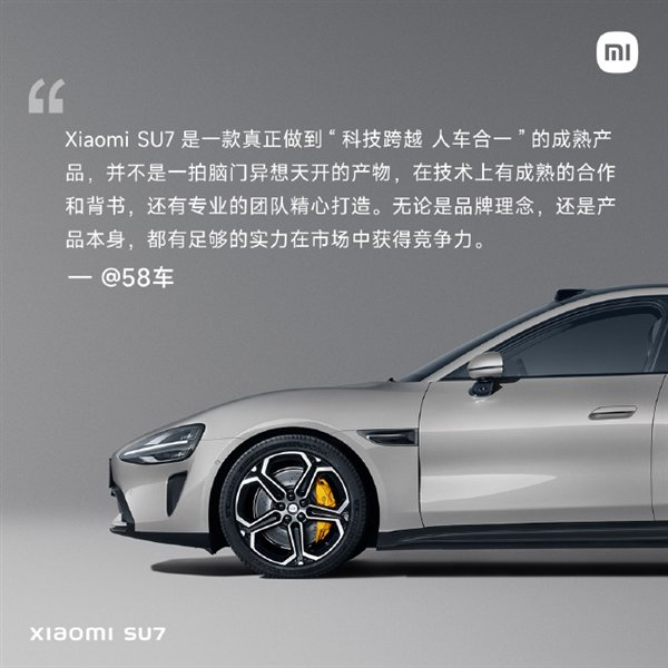 @58车:Xiaomi SU7是一款真正做到“科技跨越 人车合一”的成熟产品,并不是一拍脑门异想天开的产物,在技术上有成熟的合作和背书,还有专业的团队精心打造。无论是品牌理念,还是产品本身,都有足够的实力在市场中获得竞争力。