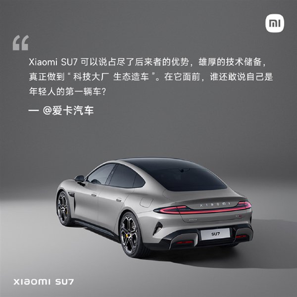 @爱卡汽车:Xiaomi SU7 可以说占尽了后来者的优势,雄厚的技术储备真正做到“科技大厂 生态造车”。在它面前,谁还敢说自己是年轻人的第一辆车?