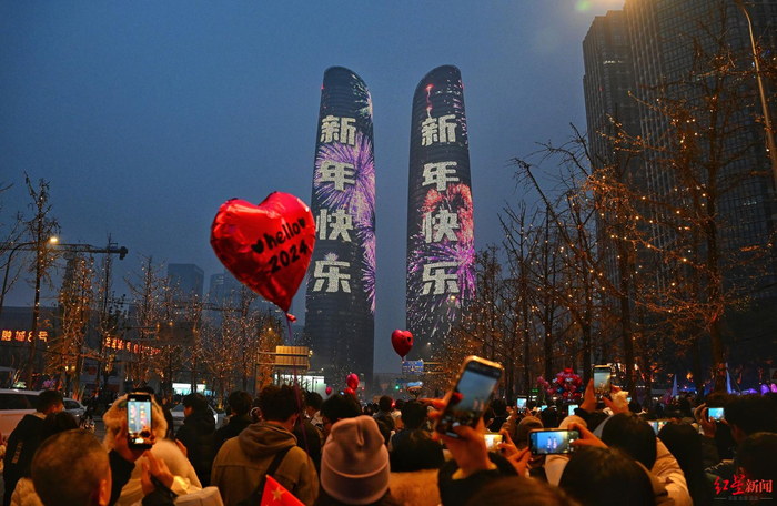 热闹!市民在天府双塔下许下新年愿望,最多提及的是……