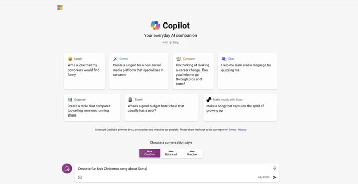 23 年 12 月 20 日推出 Suno 网页版本应用,同时微软旗下 Copilot 集合了 Suno 的功能