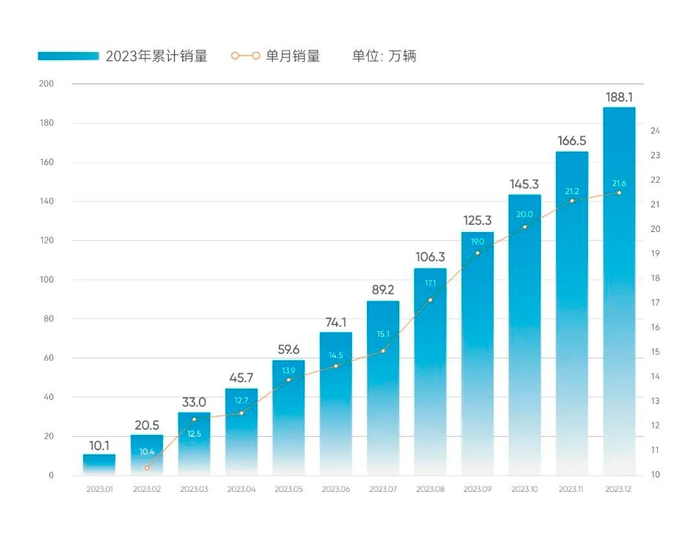 奇瑞表示,面对行业极度竞争的挑战,奇瑞集团在2023年经营业绩创造“三项历史新高”,分别是:集团年营收首次突破3000亿元,同比增长超过50%,实现一年增长1000亿的“大跨越”;汽车年销量1881316辆,同比增长52.6%,跑出了远超行业增速的“加速度”;集团年出口汽车937148辆,同比增长101.1%,连续21年位居中国品牌乘用车出口第一。