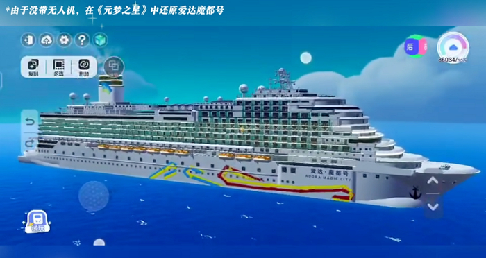 元旦前夕,籽岷作为第一批游客,登上了“爱达•魔都”号,可惜由于名额限制,没带上团队,也带不了无人机之类的设备进行航拍。遗憾之余,他干脆打开《元梦之星》造梦空间编辑器,从航拍的角度,还原出了中国首艘国产大邮轮的震撼全貌。在三次元,中国人是世界上公认的“基建狂魔“,在游戏里,国内玩家也特别爱造巨大工程。