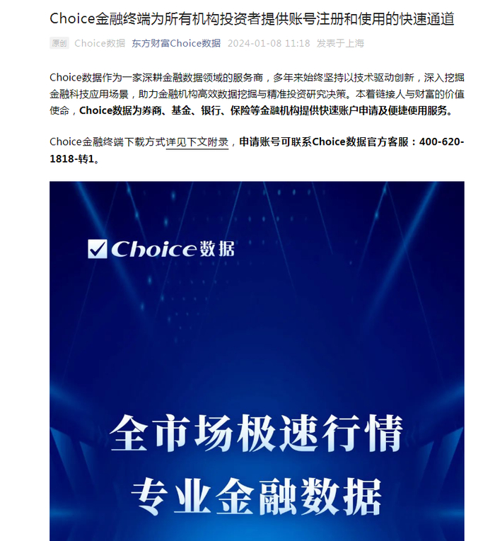 与此同时,东方财富(300059.SZ)旗下金融终端Choice数据也坐不住了。今日上午11时许,Choice数据公告称,为券商、基金、银行、保险等金融机构提供快速账户申请及便捷使用服务。截至发稿,东方财富股价跌1.20%,报13.12元/股。
