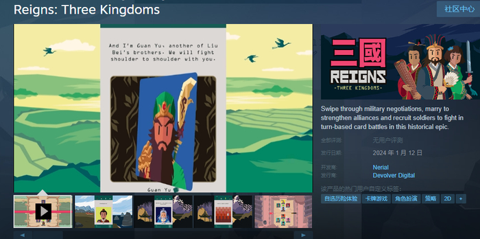 英国知名卡牌策略游戏工作室Nerial前年推出的《王权》系列作品《王权:三国》,将于12日在Steam和Switch平台发售。
