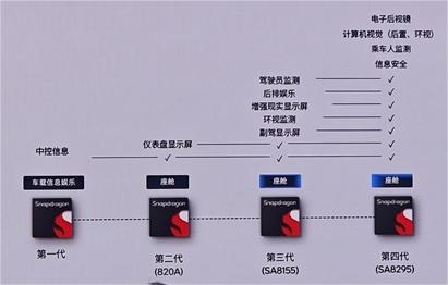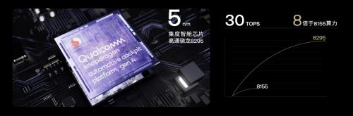 其中,最具代表性的第四代至尊级骁龙座舱平台(骁龙8295)首次在座舱SoC引入5纳米制程工艺,并支持高性能计算、计算机视觉、AI和多传感器处理等功能。