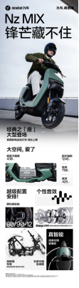 此外,全新智能两轮电动自行车车型 A2、Nz MIX、Fz MIX也在此次新品发布环节高能亮相。这一系列满载亮点的新品极大地丰富了九号电动的产品矩阵,让九号智能电动车成为城市青年出行新选择,也让两轮电动车的科技内涵得以加深。其丰富的产品线各司其职,以更细的颗粒度去关注对应的用户诉求。