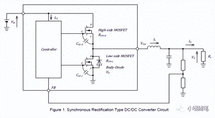 MOS 管在逆变电路,开光电源电路中经常是成对出现,习惯上称之为上管和下管,如图Figure 1中的同步Buck 变换器,High-side MOSFET 为上管, Low-side MOSFET为下管.