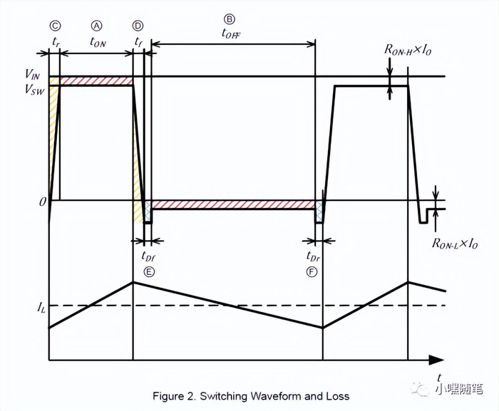 死区F---tDr: 下管关断,上管还没开启,下管体二极管续流,电流接近最小值Io - ΔI/2 ,由于死区时间很短,工程上计算可以近似为死区F的电流恒定,以方便计算。
