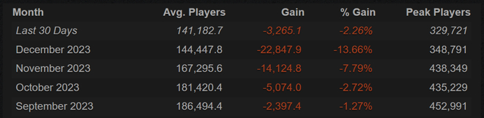 诚然,联动商品的定价跟游戏性无关,短期内也不会影响到占据玩家群体多数的微氪和零氪党。不过,根据Steamcharts网站数据,《Apex英雄》在这几个月里的玩家数量持续流失,正需要一次成功的联动活动,来挽回在线人数、拯救商业收入。