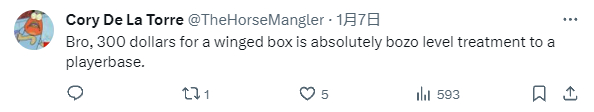 就连一位前重生员工也看不下去了,发推表示:“花300刀买个带翅膀的盒子,这绝对是在把玩家当成傻瓜对待。”