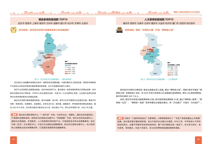华东、华中地区城市综合活力整体增强。除南京、南昌外,11座城市综合活力排名较去年持 平或上升。武汉蝉联第1,上海和杭州上升至第2和第4,宁波上升至第9,长沙、郑州、合肥、 青岛、济南、厦门、福州均在前 20之列。