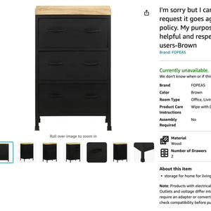 如果我们要给一款待售的家具命名,通常会选择一些不那么拗口的名字,至少形容外观时要准确清晰。然而在这件物品的规格清单上,商家还声称它有两个抽屉,而图片清楚地显示它有三个。