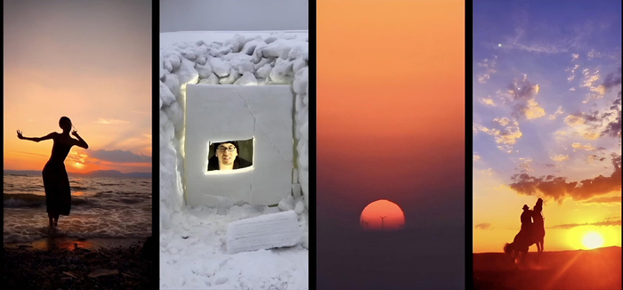 第三,竖屏与横屏之间的关系,这是一种被动选择,手机拍摄的条件必然带来了竖屏与影院播放的横屏之间形式上的冲突,在探索解决方案的过程中找到了一种新的多屏蒙太奇的方式。