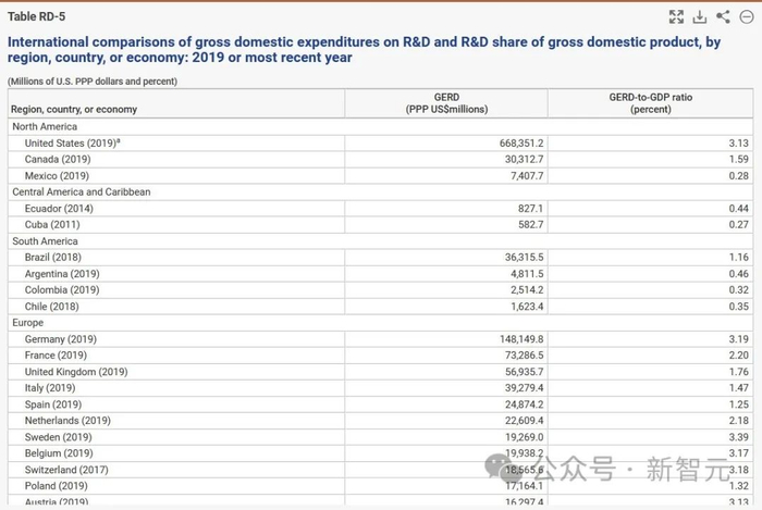 其中,美国在 2019 年的研发支出为 6683.5 亿美元,占国内 GDP 的 3.13%。