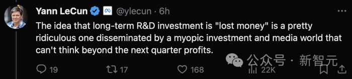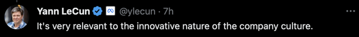 相比之下,LeCun 则认为,在研发上的长期投入,代表着企业文化的创新性。