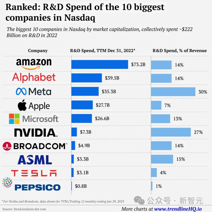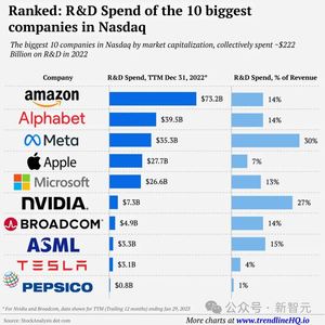 最近,一张 2022 年纳斯达克 Top 10 企业的研发支出图,突然火了。