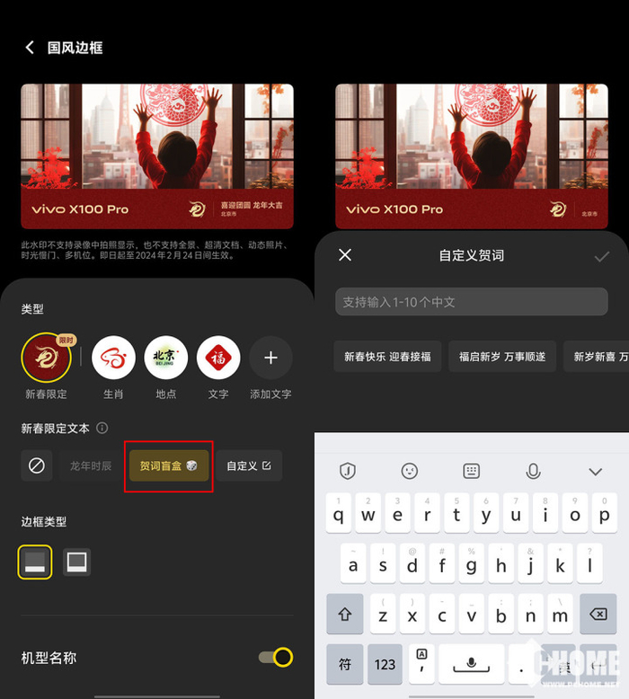 vivo更新国风水印 龙年春节摄影更有节日氛围