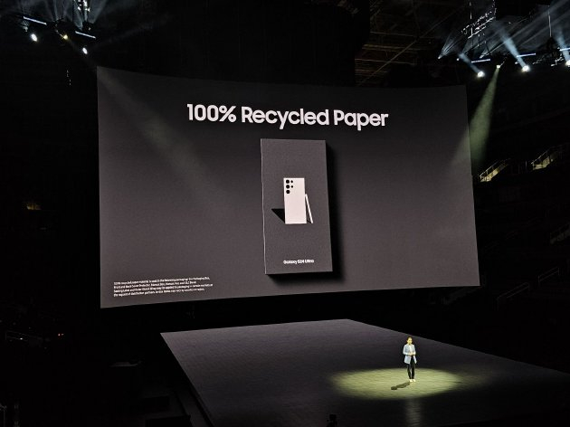三星首次将再生钢材和热塑性聚氨酯(TPU)材料应用于Galaxy S系列。三星Galaxy S24 Ultra的扬声器当中,40%的钢材为再生钢材,机身侧键和音量键当中,10%的热塑性聚氨酯为消费前再生材料。此外,三星Galaxy S24系列的包装盒均由100%再生纸制成。