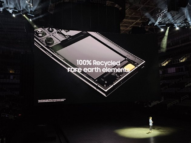 三星Galaxy S24系列进一步扩充了设备当中所使用的再生材料的种类,三星Galaxy S24系列的机身内部和外部组件中均使用了再生塑料、玻璃和铝,并首次采用了含有再生钴和再生稀土元素的部件,例如,三星Galaxy S24 Ultra的电池当中50%的钴为再生钴,扬声器当中100%的稀土元素均为再生稀土元素。