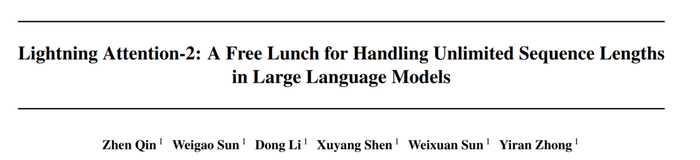 Lightning Attention-2 是一种新型的线性注意力机制,让长序列的训练和推理成本与 1K 序列长度的一致。