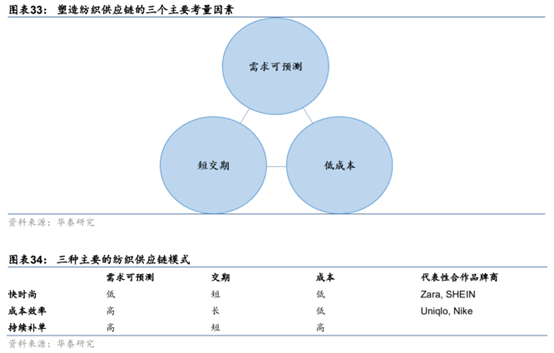 最核心的原因在于,并购前亚玛芬供应链中,有22%的产值来自中国,最新披露的招股书虽然没有产业链具体产业披露,但是根据风险因素表诉来看,2022年亚玛芬约有33%的第三方供应商产品来自中国生产。服装纺织行业周期最明显的发展特征就是成本第一性,从欧洲到美国,再到日本、中国、东南亚无外乎最关键的就是成本要素。但是外贸电商时代,以Shein为首的企业证明了高周转的重要性,纺织品供应链也从单一的低成本要素,转为需求可预测、短交期和成本三重要素考量。